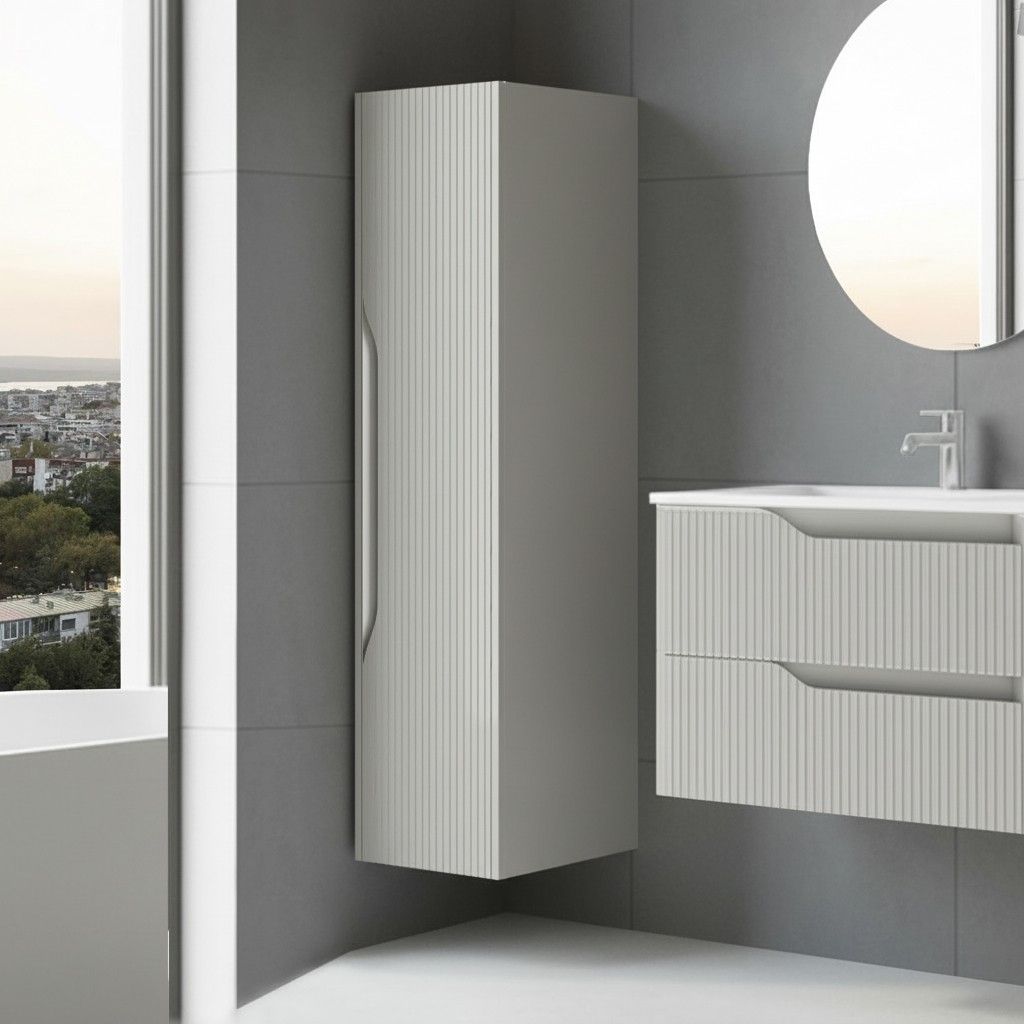 Articolo: Colonna Bagno Sospesa Soho 1 Anta Effetto Cannettato Colore Cashmere Opaco 120x27x35 Cm.