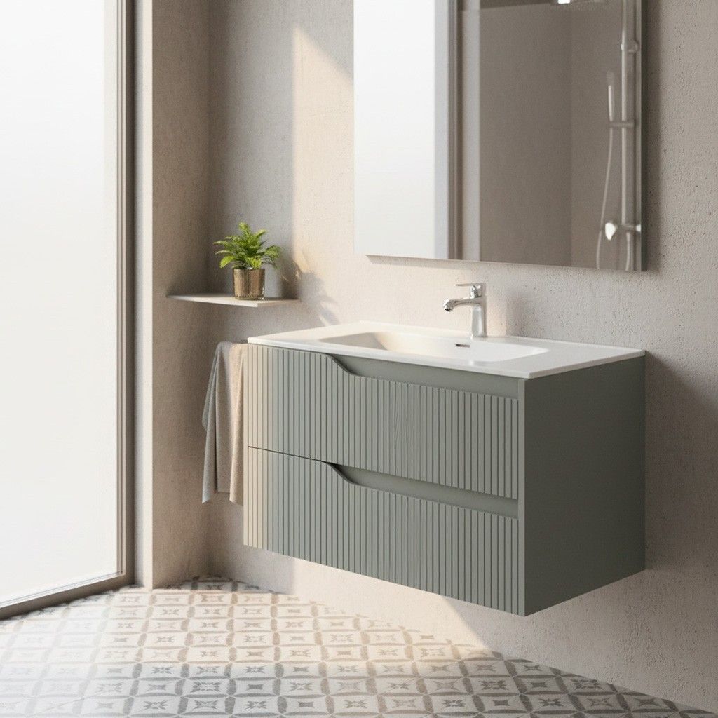 Articolo: Mobile Bagno Sospeso Soho Con Due Cassetti Effetto Cannettato Colore Verde Opaco 80x45x50 Cm.