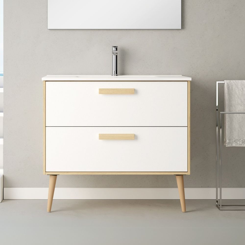 Articolo: Mobile Bagno Nordic Con Struttura In Rovere E 2 Cassetti Bianco Opaco