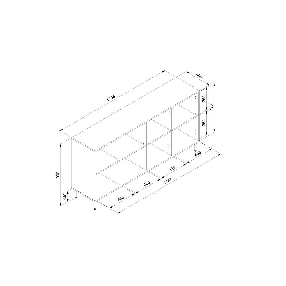 Misure H 90 x L 180 x P 40 cm.