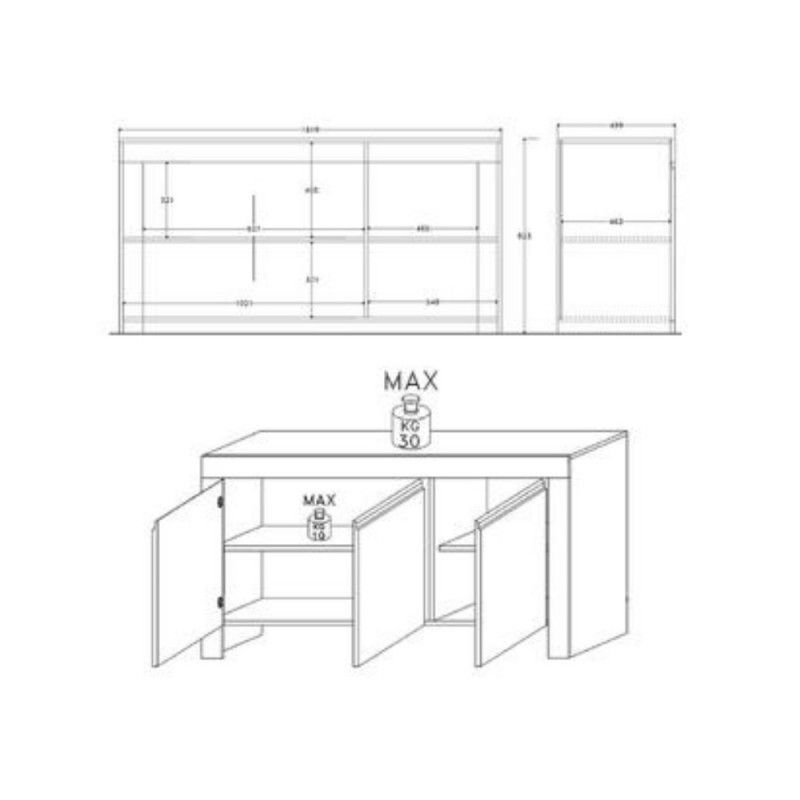 La credenza Acapulco costituita da 3 ante è un mobile perfetto per arredare un soggiorno in stile moderno. Non occupa molto spazio nella sala, ma risulta capiente e con due vani interni, uno più grande e uno più piccolo. Le sue forme sono ben proporzionate, i volumi ben distribuiti e adatti a contenere in modo risolutivo, diversi oggetti per la casa.