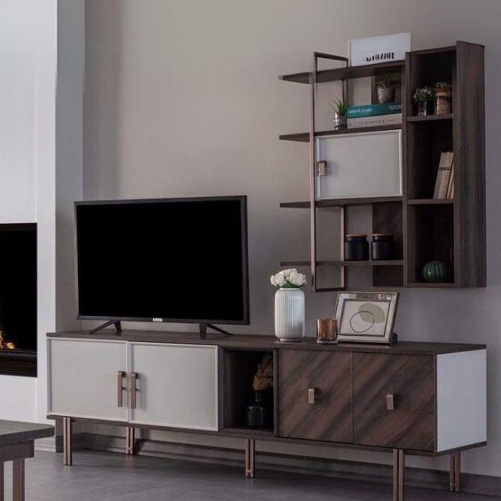 Articolo: Base Porta Tv Merlin 4 Ante Battenti E 1 Vano A Giorno Colore Legno Mozambik