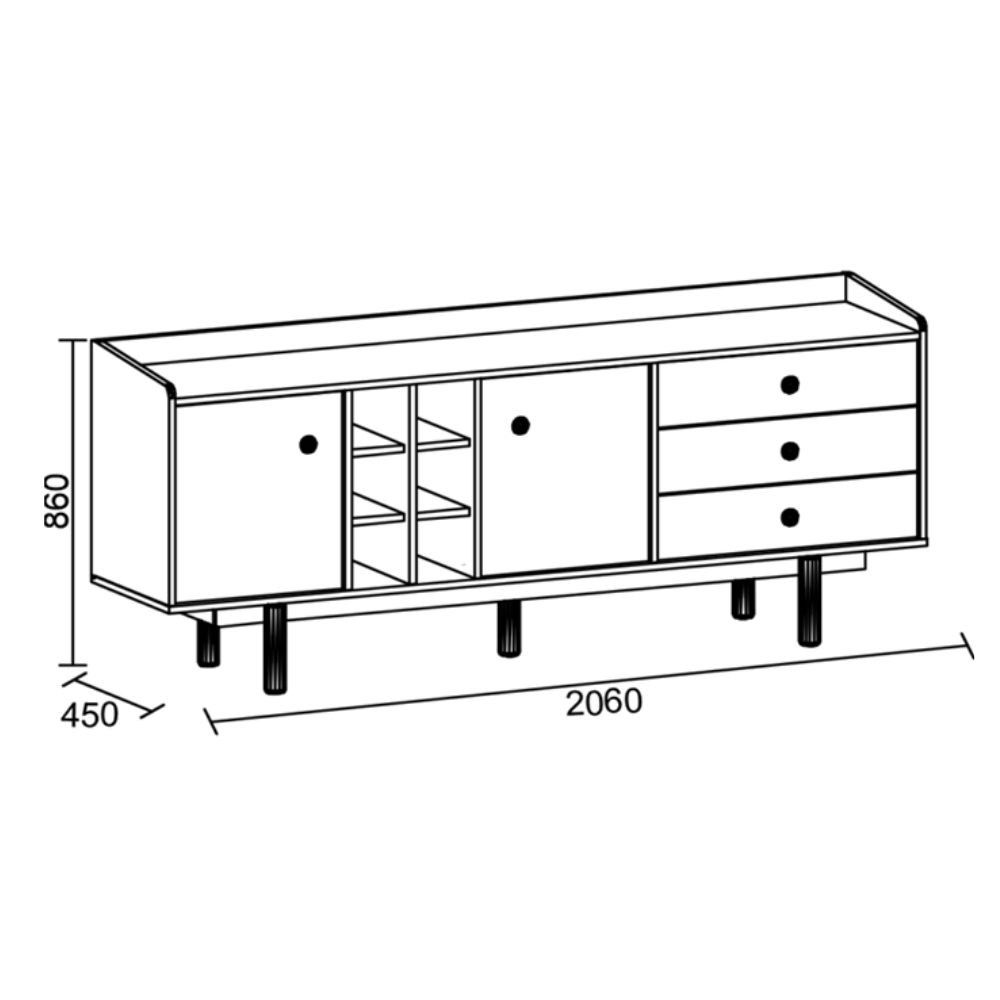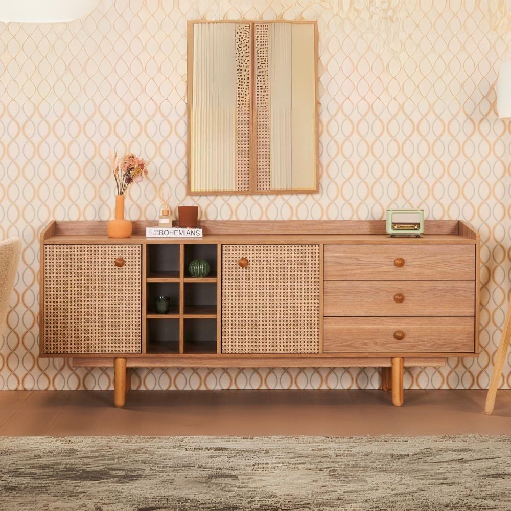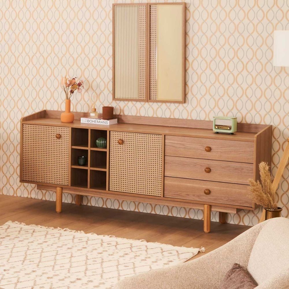 Articolo: Madia Natura 2 Ante, 3 Cassetti E Vani A Giorno Colore Rovere Miele Effetto Vimini