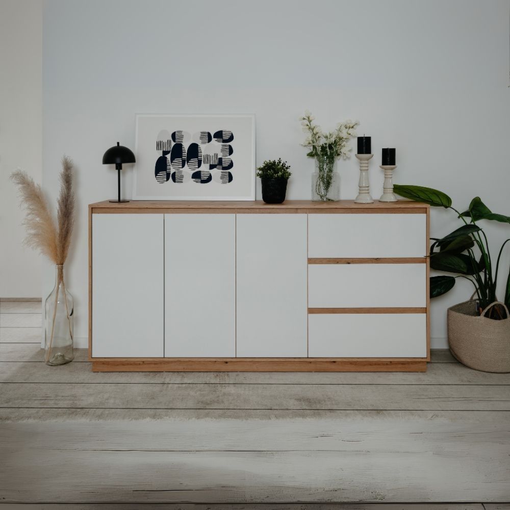 Articolo: Credenza Phoenix 51A 3 Ante E 3 Cassetti Con Struttura Rovere E Frontali Bianco