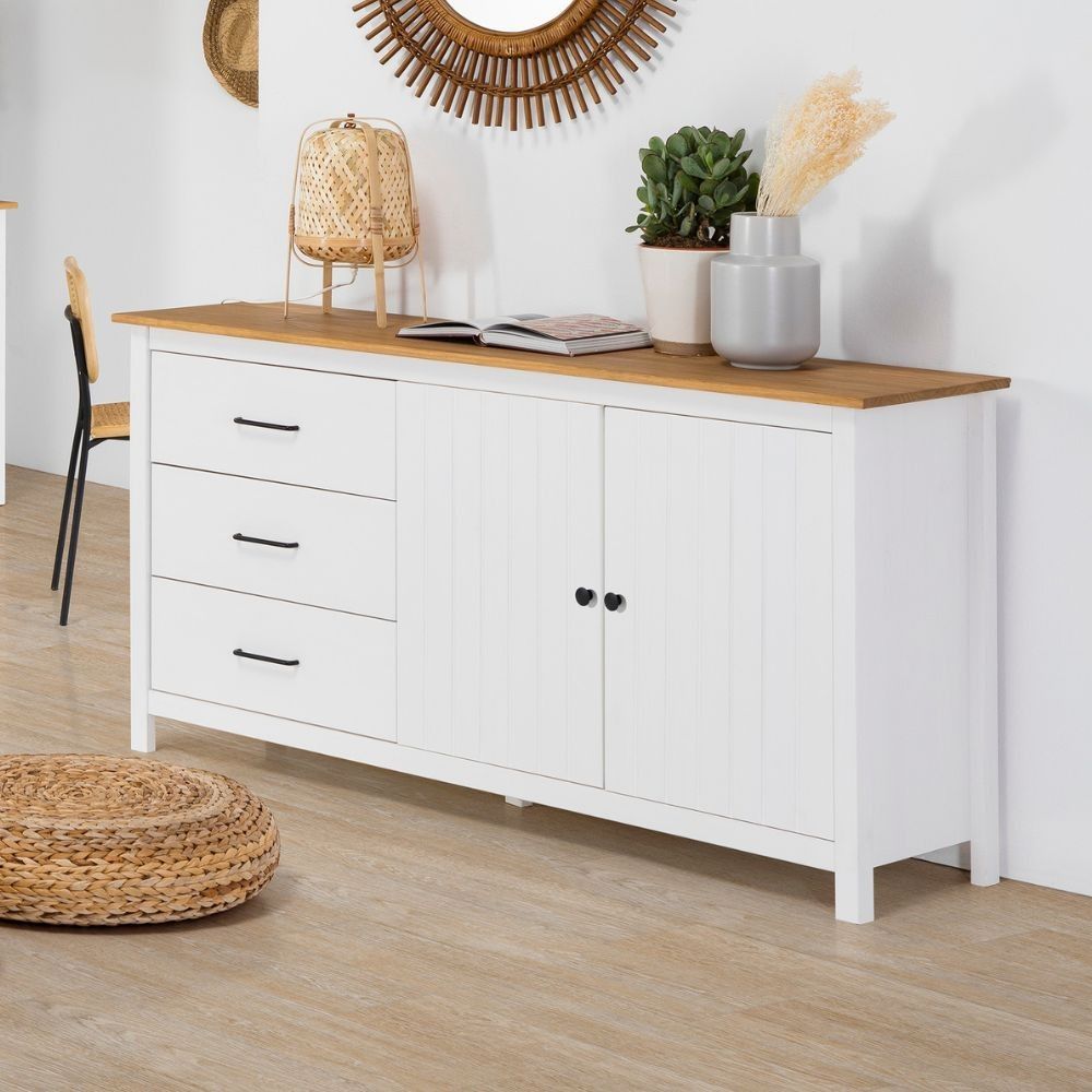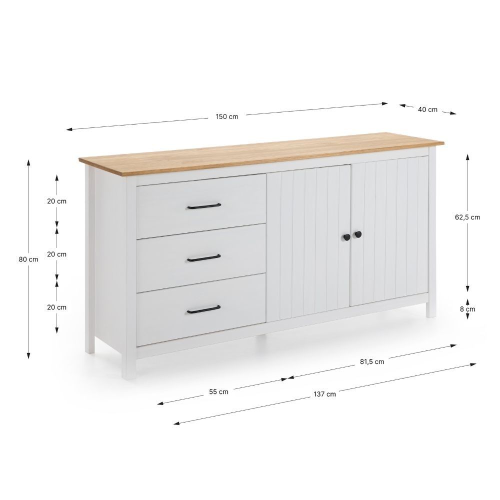 Articolo: Credenza Miranda Con 2 Ante E 3 Cassetti In Legno Massiccio Bianco Con Top Pino