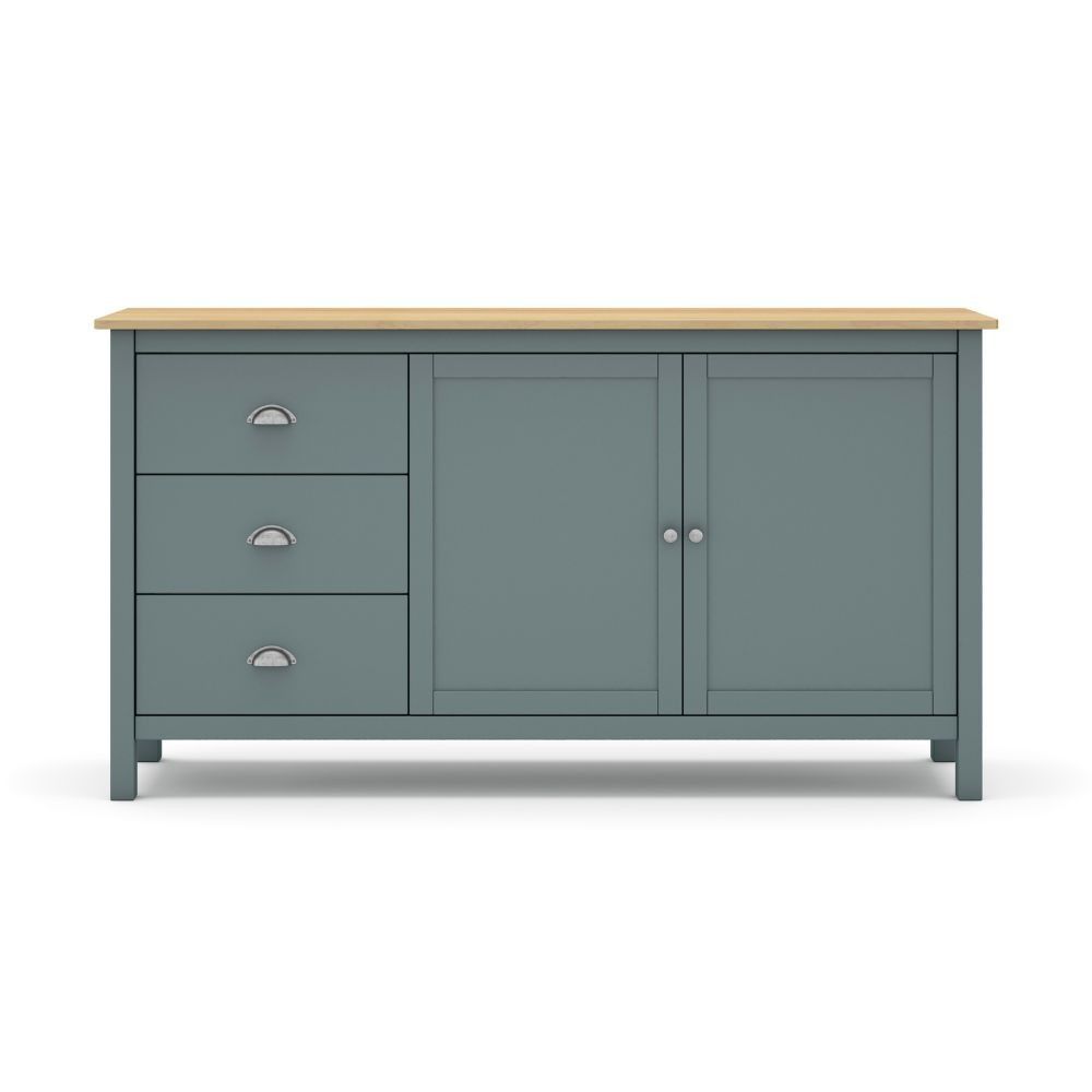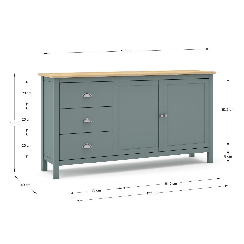 Articolo: Credenza Misti 2 Ante E 3 Cassetti In Legno Massiccio Verde Khaki E Rovere