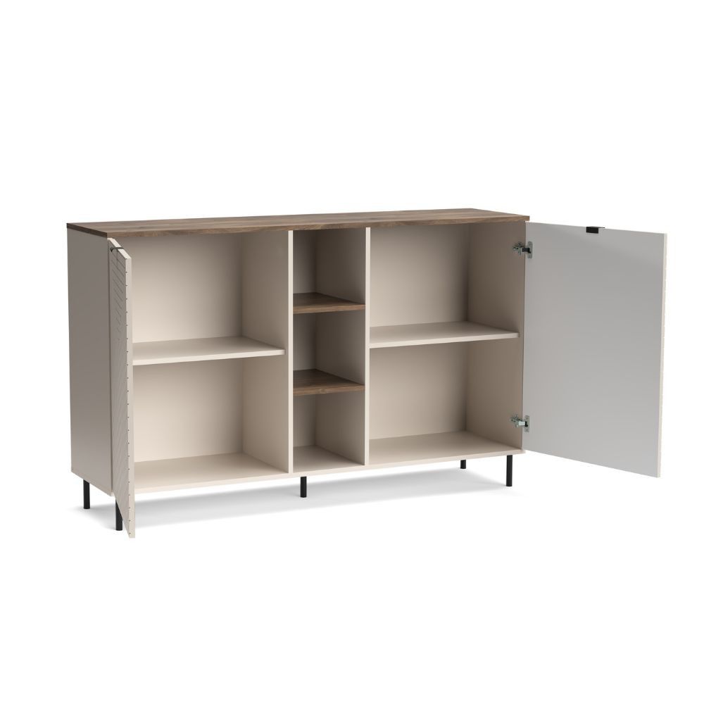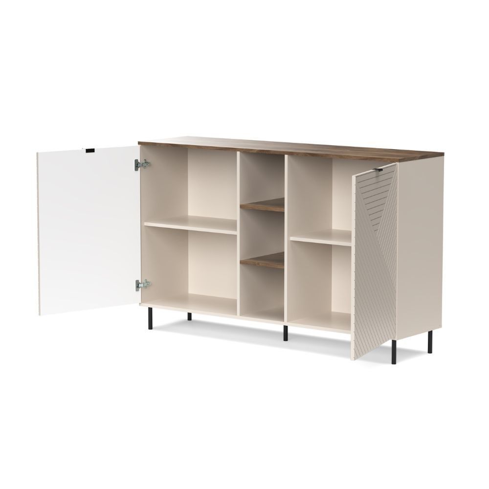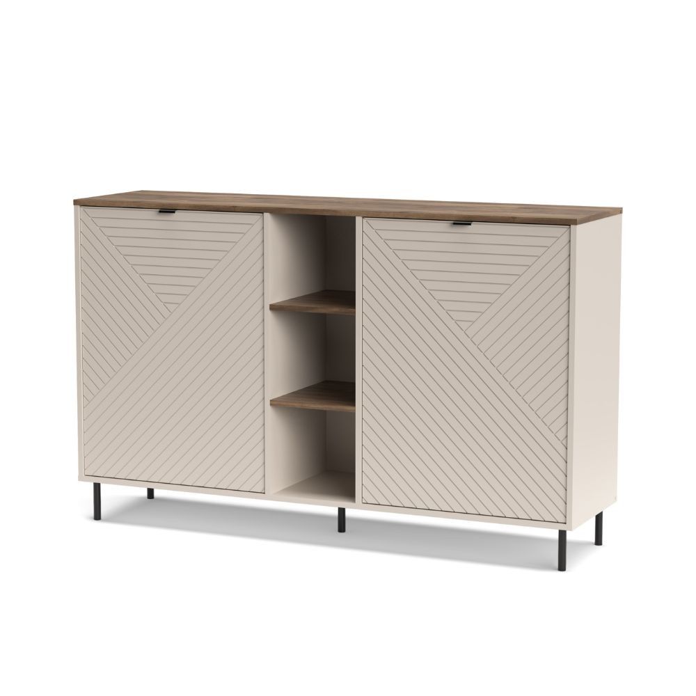 Articolo: Credenza Mirage08 Con 2 Ante Con Motivo Geometrico E Ripiani A Giorno Colore Cashmere E Rovere
