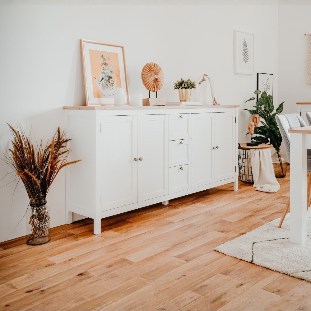 Articolo: Madia Bergen51 Con 4 Ante E 3 Cassetti Colore Bianco E Rovere Oak