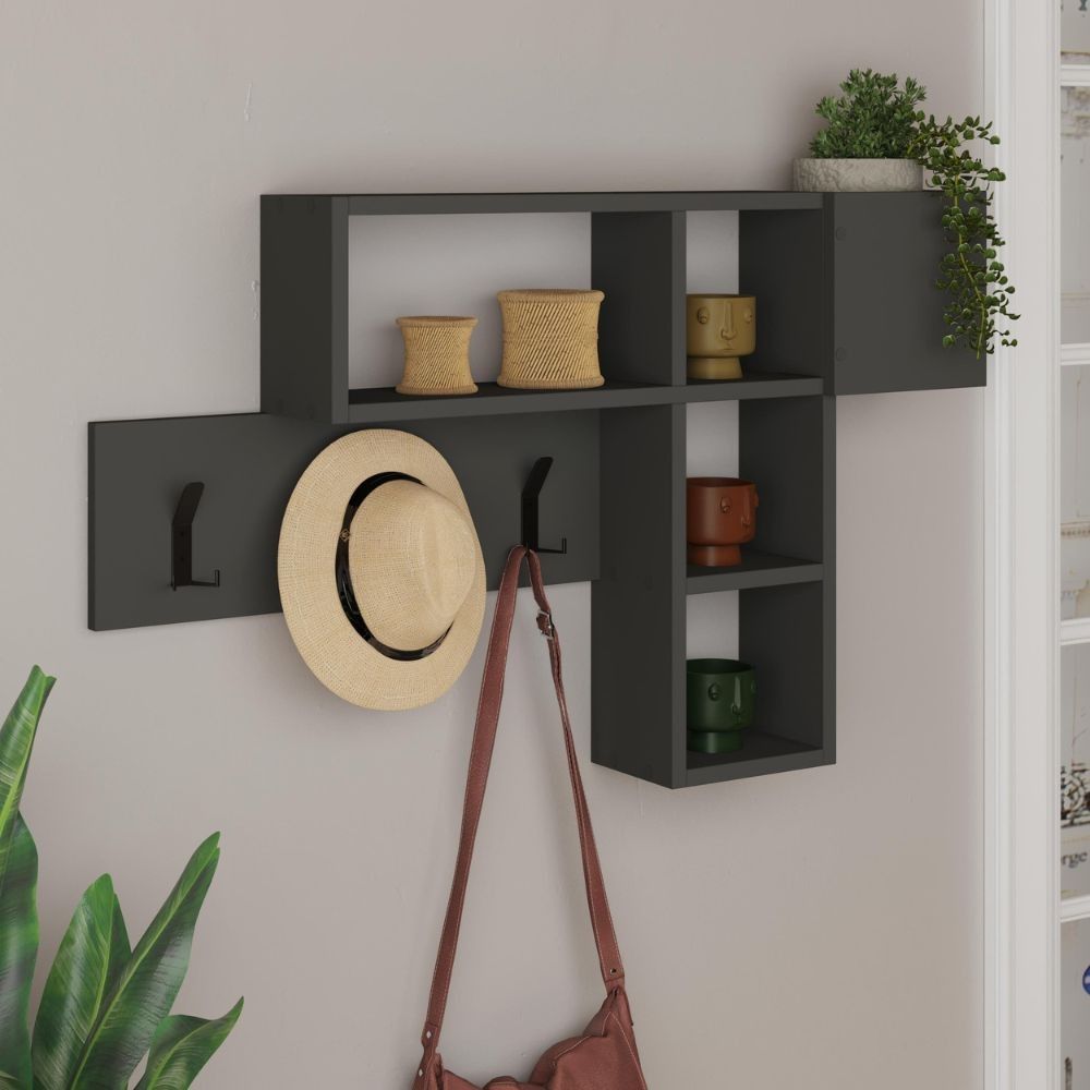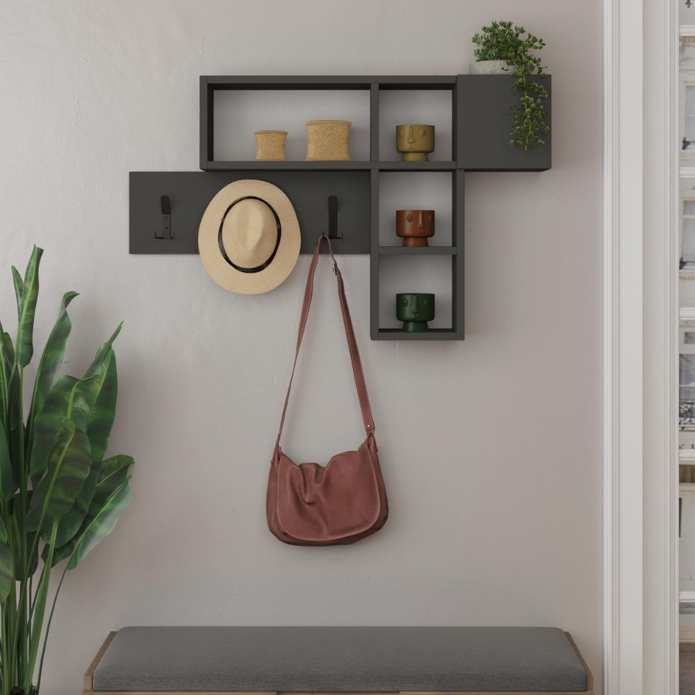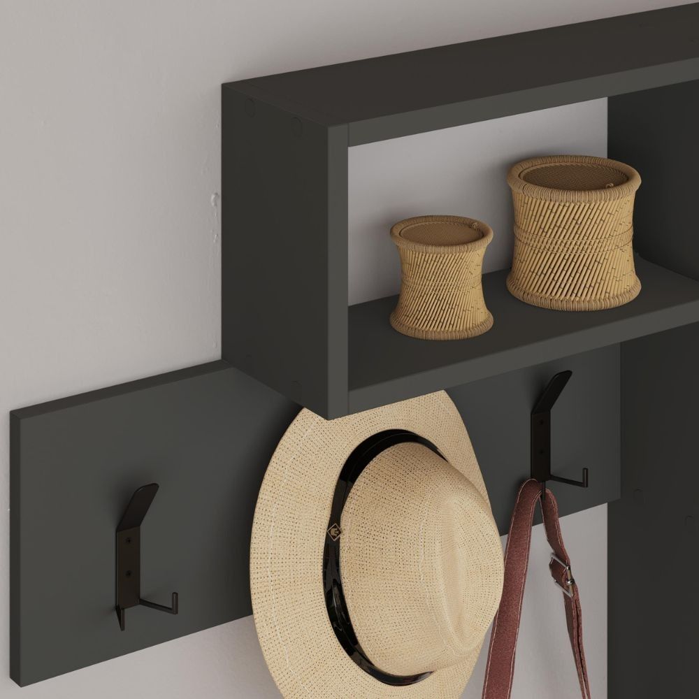 Articolo: Appendiabiti Da Parete Antracite Con 3 Ganci Appendiabiti E 4 Nicchie A Giorno Game