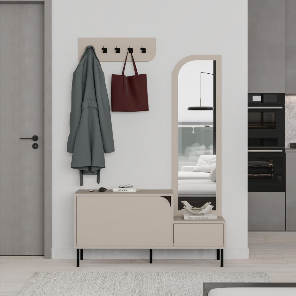 Articolo: Mobile Ingresso Mila Con Scarpiera Ganci Appendi Abito E Specchio Colore Cashmere