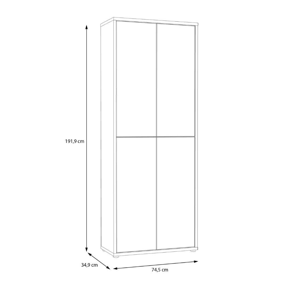 Dimensioni: L 74.5 x P 34.9 x H 191.9 cm.