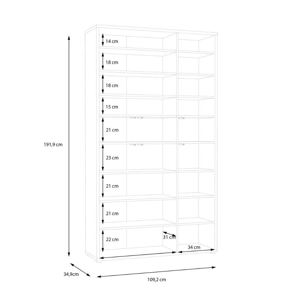 Dimensioni: L 109.2 x P 34.9 x H 191.9 cm.