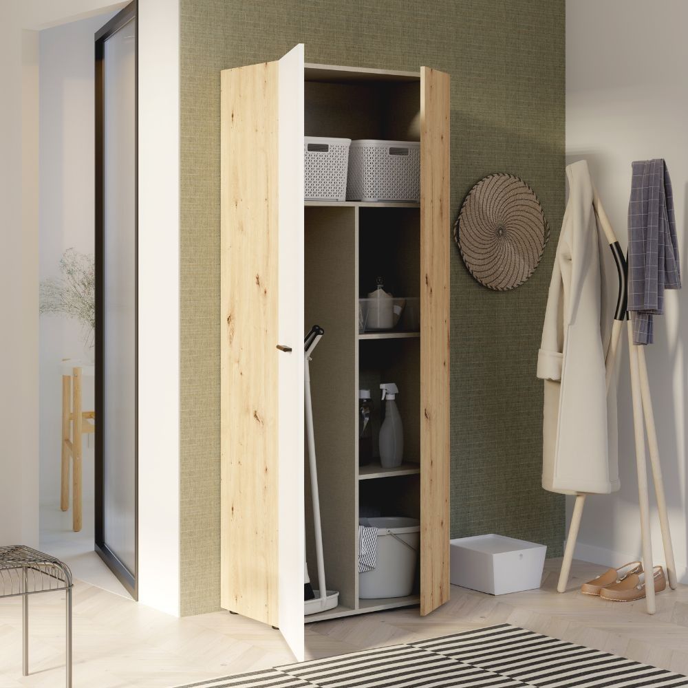 Articolo: Armadio Multiuso Teodoro 2 Ante Con Portascope Struttura Rovere E 1 Anta Bianco