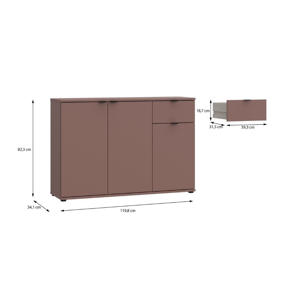 Articolo: Mobile Multiuso Segno Con Tre Ante E 1 Cassetto L 120 Cm Colore Terracotta