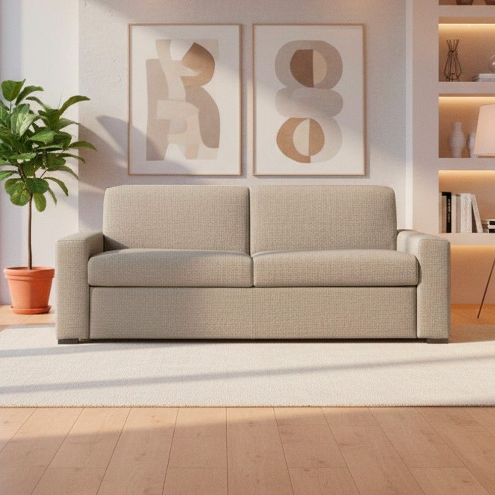 Articolo: Divano Letto Flash 3 Posti Con Rete Elettrosaldata In Tessuto Queens Beige