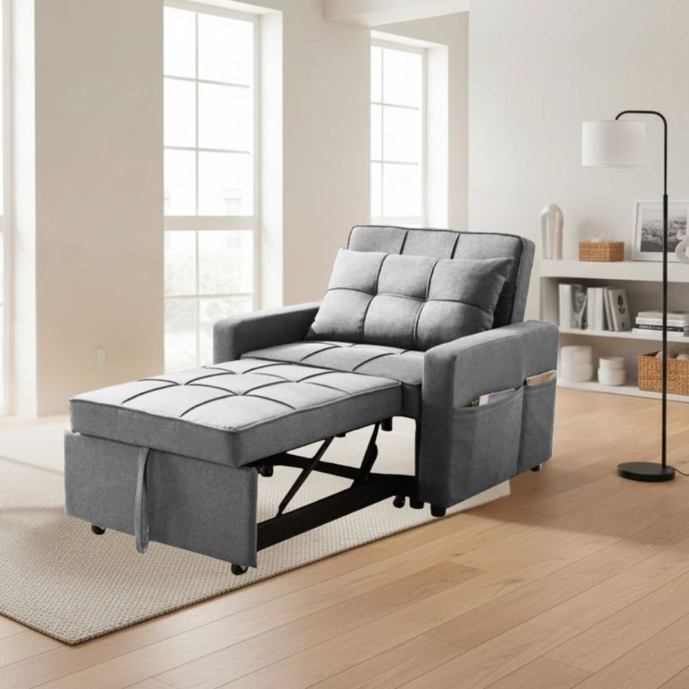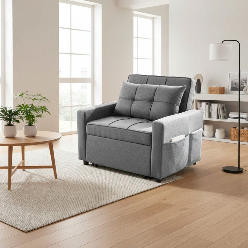 Articolo: Poltrona Letto Miray Con Schienale E Seduta Trapuntata In Tessuto Grigio