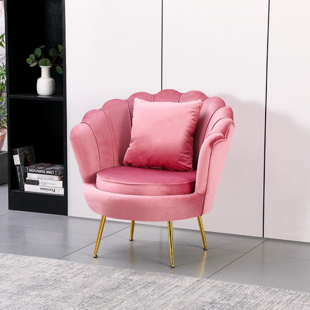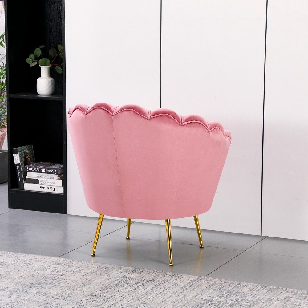 Articolo: Poltrona A Conchiglia Orel In Velluto UF910-7 Rosa E Gambe Oro
