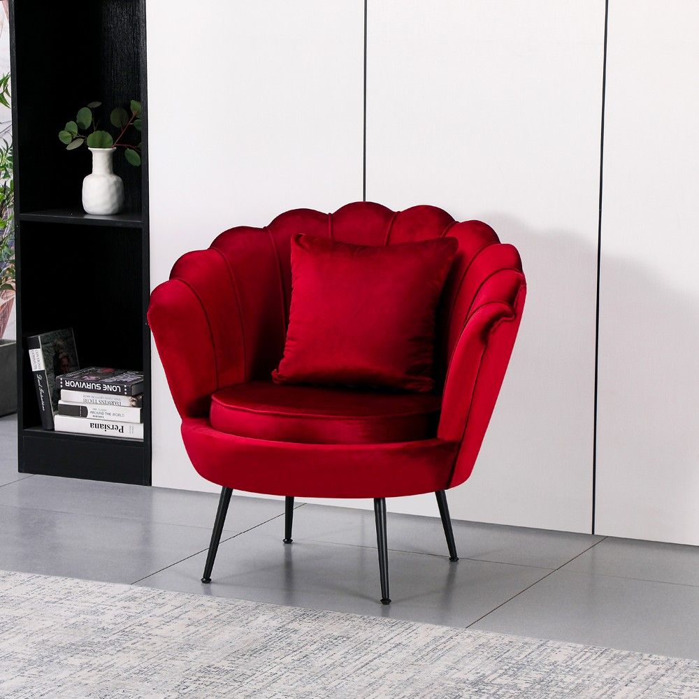 Articolo: Poltrona A Conchiglia Orel In Velluto UF910-11 Rosso E Gambe Nere