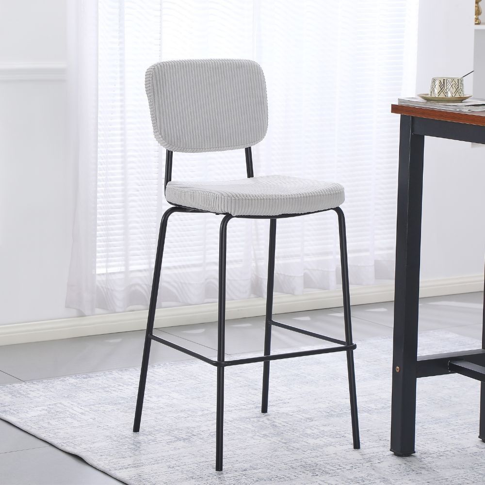 Articolo: Sgabello Juno In Tessuto Colore Grigio Chiaro E Struttura In Metallo Nero