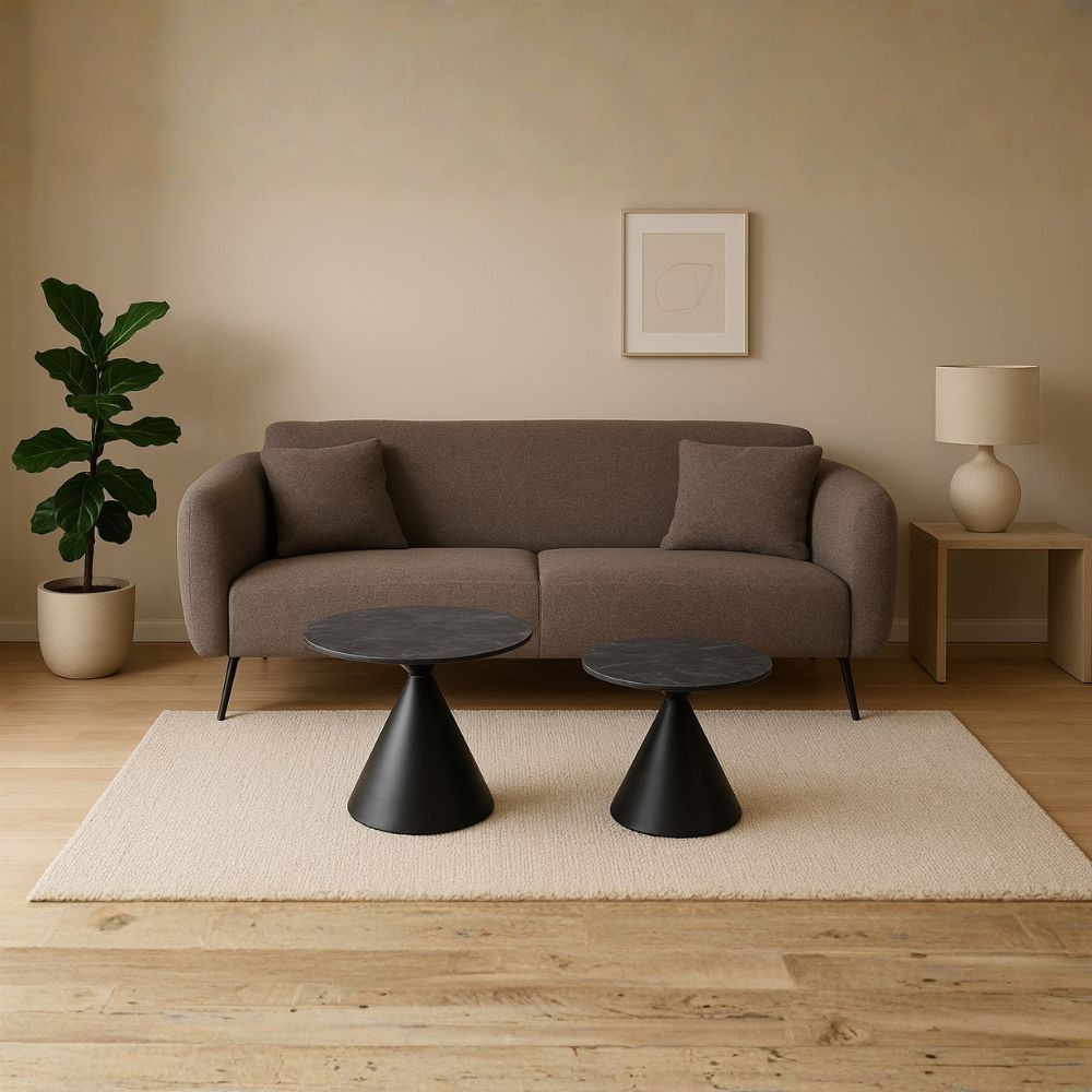 Articolo: Set 2 Tavolini Da Salotto Basso Punto Con Piano Effetto Marmo Nero E Gambe In Metallo Nero
