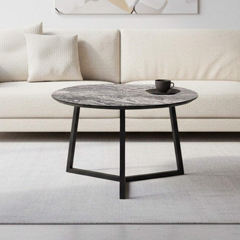 Articolo: Tavolino Da Salotto Klint Con Piano Effetto Marmo Nero Arabesque E Gambe Nere