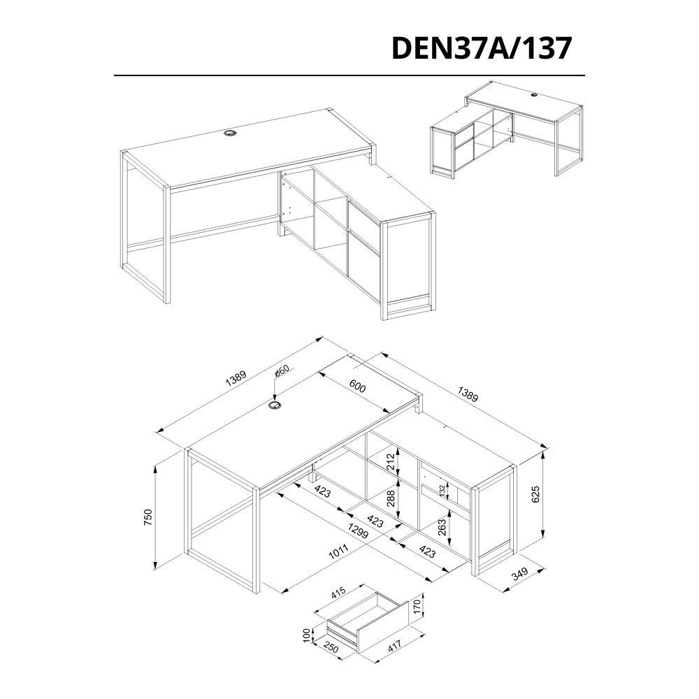 Articolo: Scrivania Angolare Denver37A Reversibile Quercia Antracite