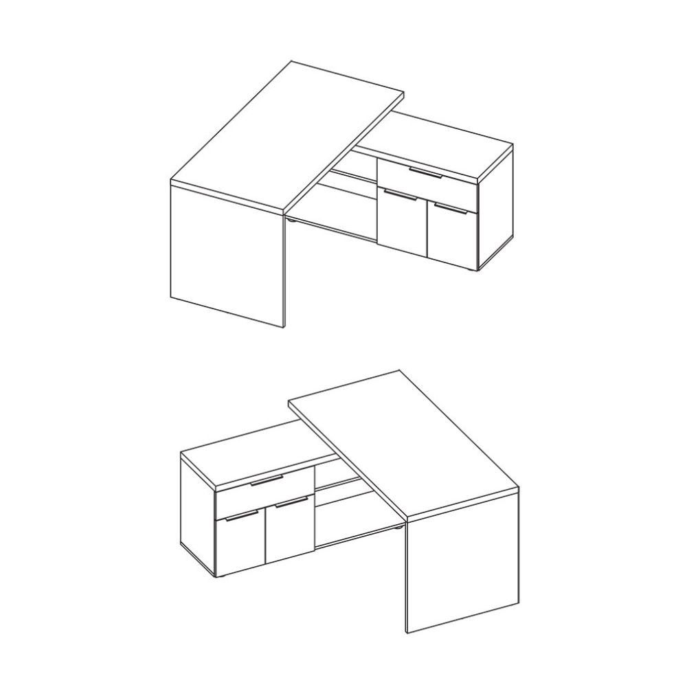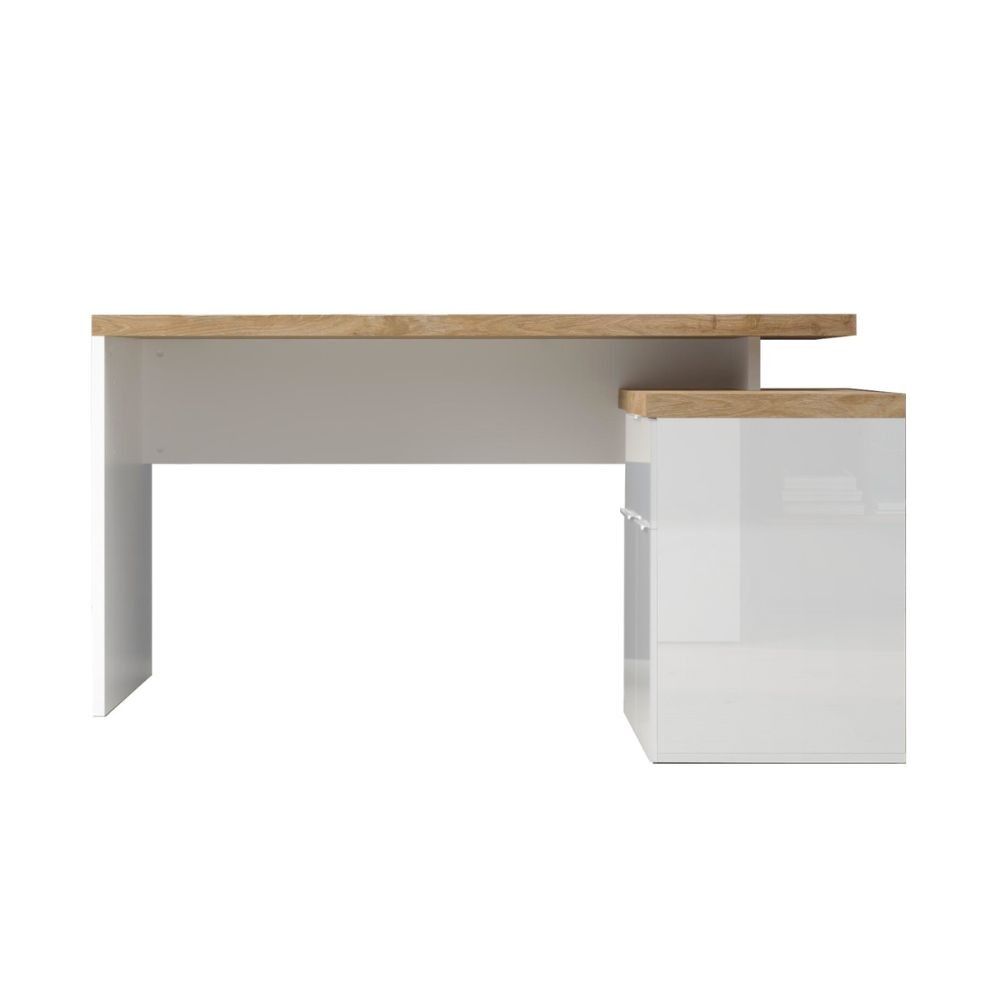Articolo: Scrivania Angolare Zenzero Reversibile Con Due Ante Due Vani A Giorni E Un Cassetto Bianco Lucido E Cadiz